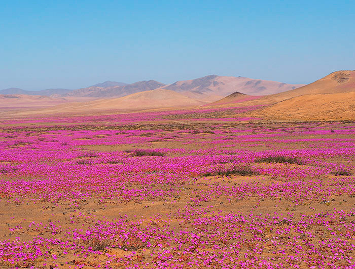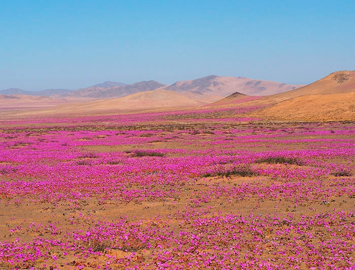 Un verdadero manto de flores, que hace olvidar que se está en el desierto más árido del mundo: Atacama. Esto es lo que se aprecia cuando se conjugan la cantidad exacta de precipitaciones y temperatura, para despertar las semillas que llevan años dormidas, generando un completo ecosistema de insectos, reptiles y aves que es necesario conservar y proteger.