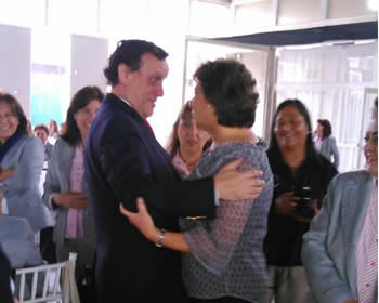 ( En la foto vemos a Patricia Breinbauer, de Pregrado, con el rector Ignacio Sanchez en el desayuno en Campus Oriente)