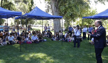 Sobre el pasto y bajo la sombra de los árboles de Campus San Joaquín, casi 200 alumnos de la Facultad de Agronomía dialogaron con el ministro de Agricultura, Antonio Walker. Previamente, la autoridad se había reunido con algunos profesores que expresaron cuáles son los principales desafíos que tiene la unidad académica.