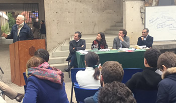 Terminó el foro con una conmovedora reflexión dirigida por el padre Mariano, la que fue seguida de las respuestas de los asistentes y los agradecimientos del Decano Figueroa a los panelistas y audiencia, quienes ignoraron el frío invernal hasta pasadas las 14:00 hrs.