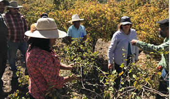 Claudia Bonomelli y Cristian Barrera, profesores del Departamento de Fruticultura de la Facultad de Agronomía e Ingeniería Forestal UC, realizaron la capacitación en Quipisca, en la comuna de Pozo Almonte. Su agricultura se caracteriza por ser tradicionalmente comunitaria, familiar y en armonía con la tierra.