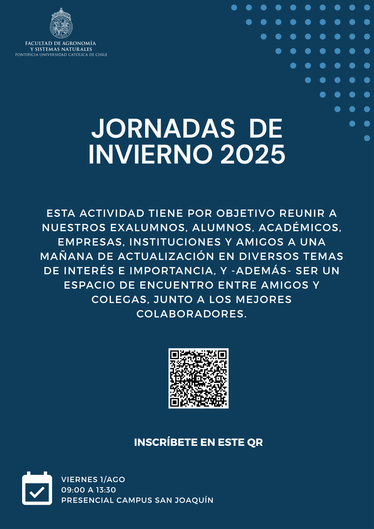 En Facultad de Agronomía y Sistemas Naturales UC Avenida Vicuña Mackenna 4860, 6904411 Santiago, Macul, Región Metropolitana