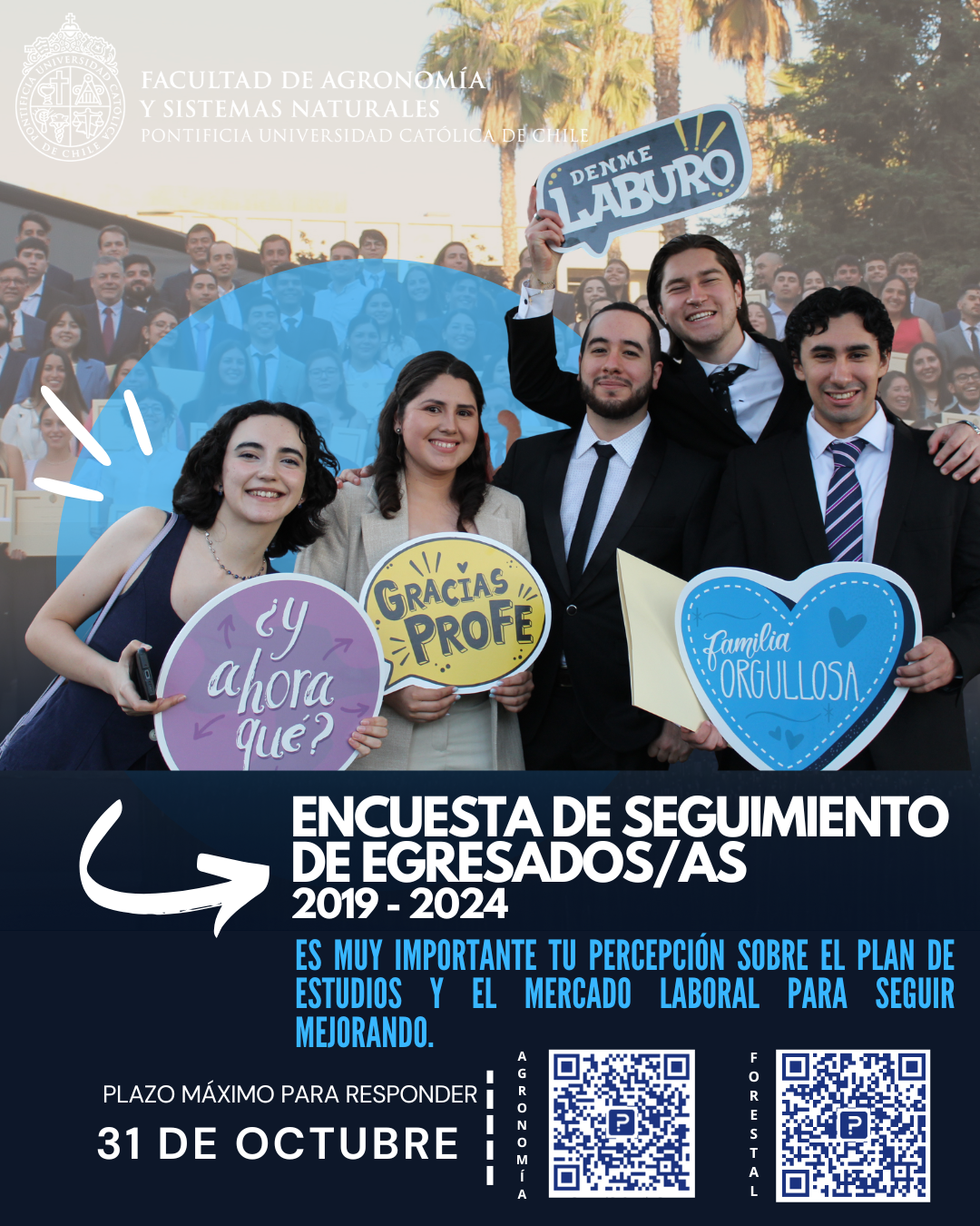 Link encuesta Alumni Agronomía UC aquí.Link encuesta Alumni Ingeniería Forestal UC aquí.