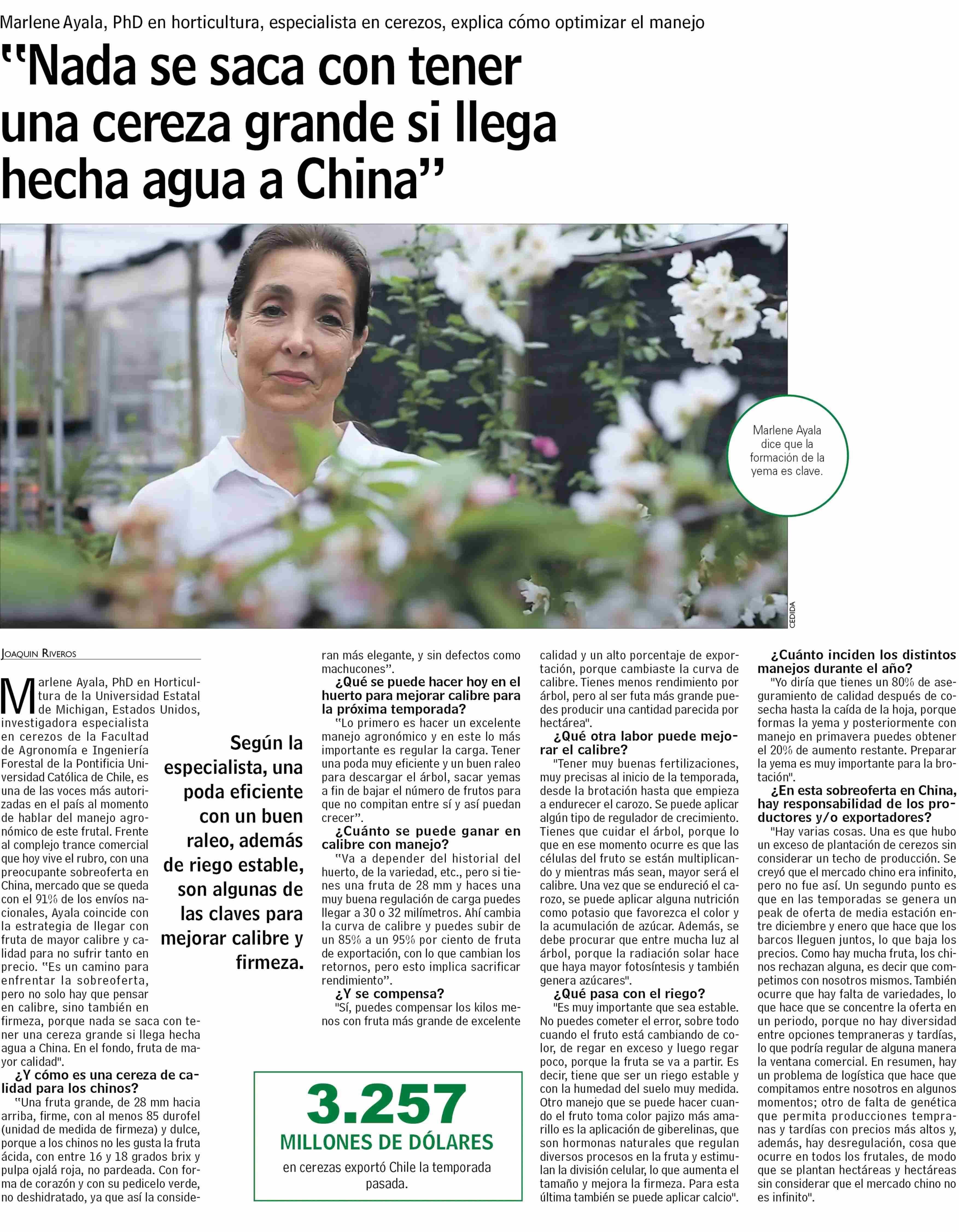 Profesora Marlene Ayala en entrevista con Las Últimas Noticias "Nada se saca con tener una cereza grande si llega hecha agua a China"