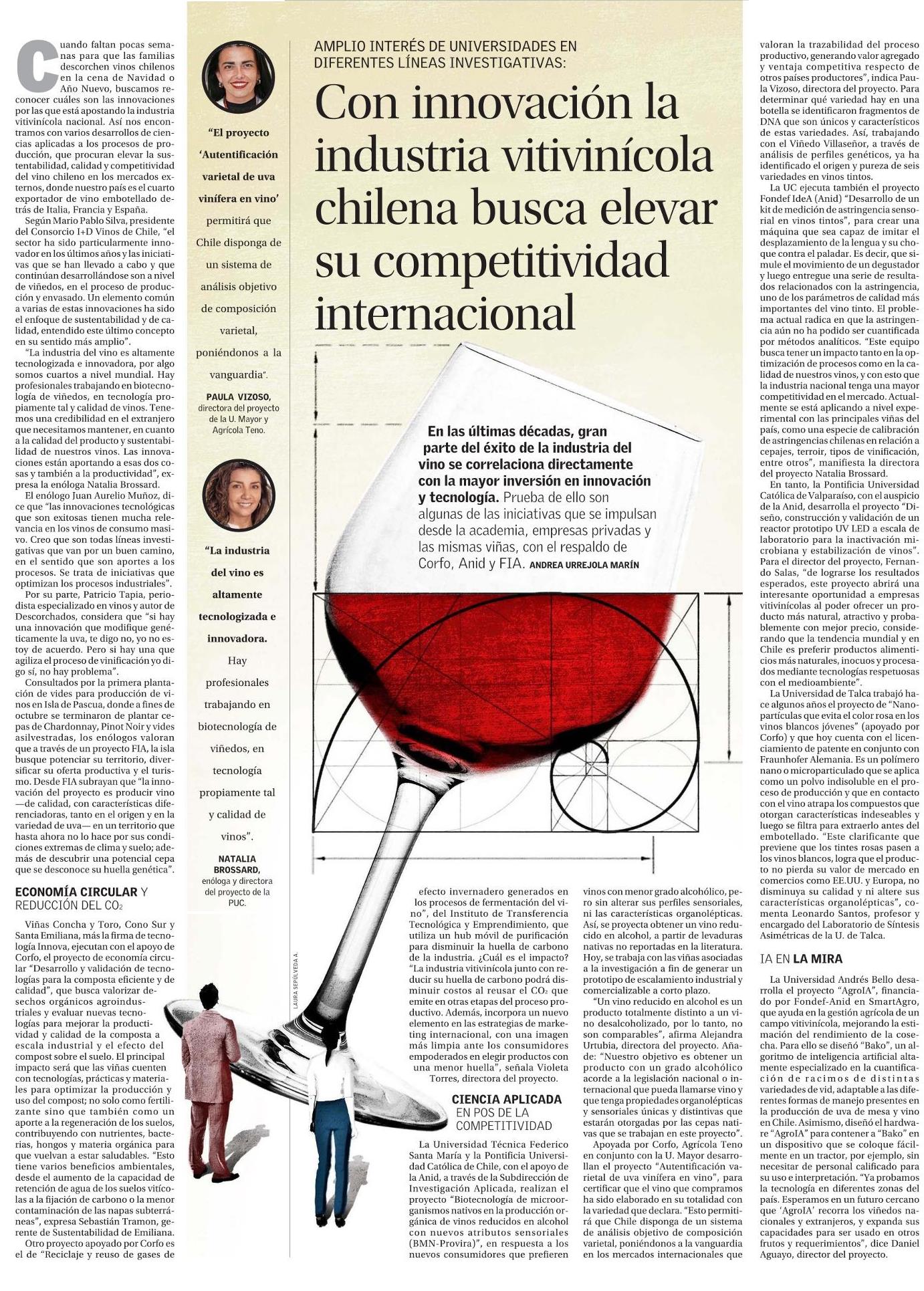 El Mercurio-Innovación destaca innovaciones aplicadas a la industria vitivinícola chilena que buscan elevar su competitividad internacional